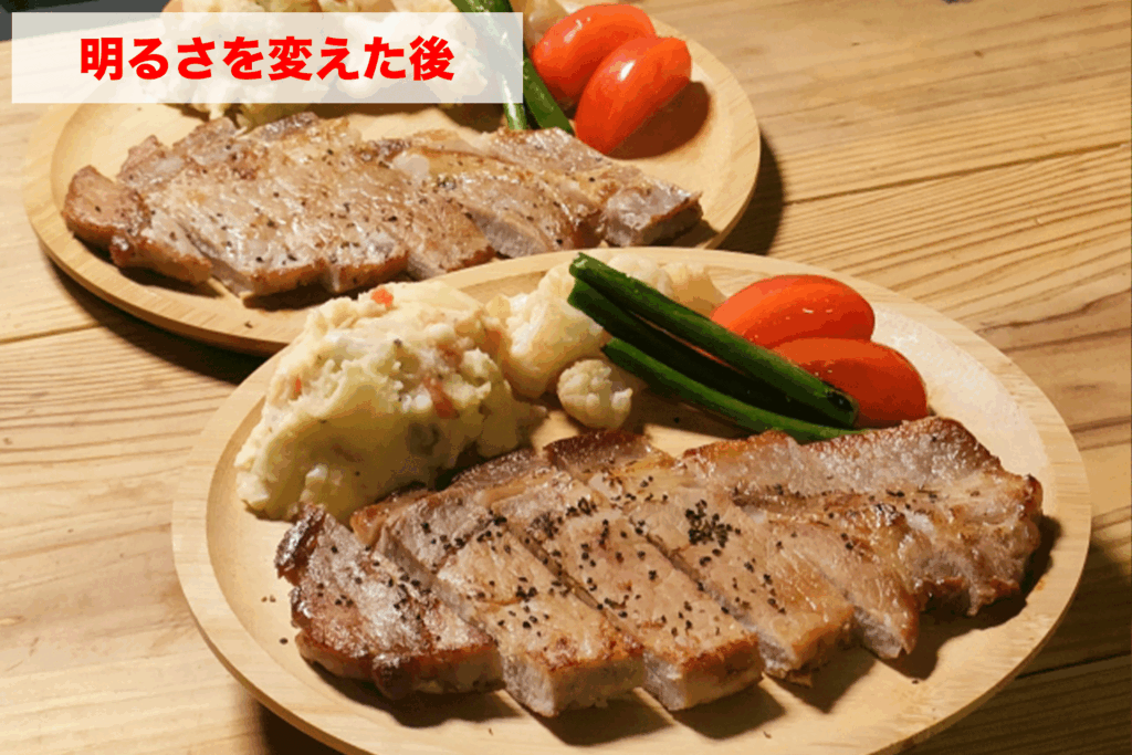 明るさやコントラストを調整し、料理をより美味しそうに際立たせられます。