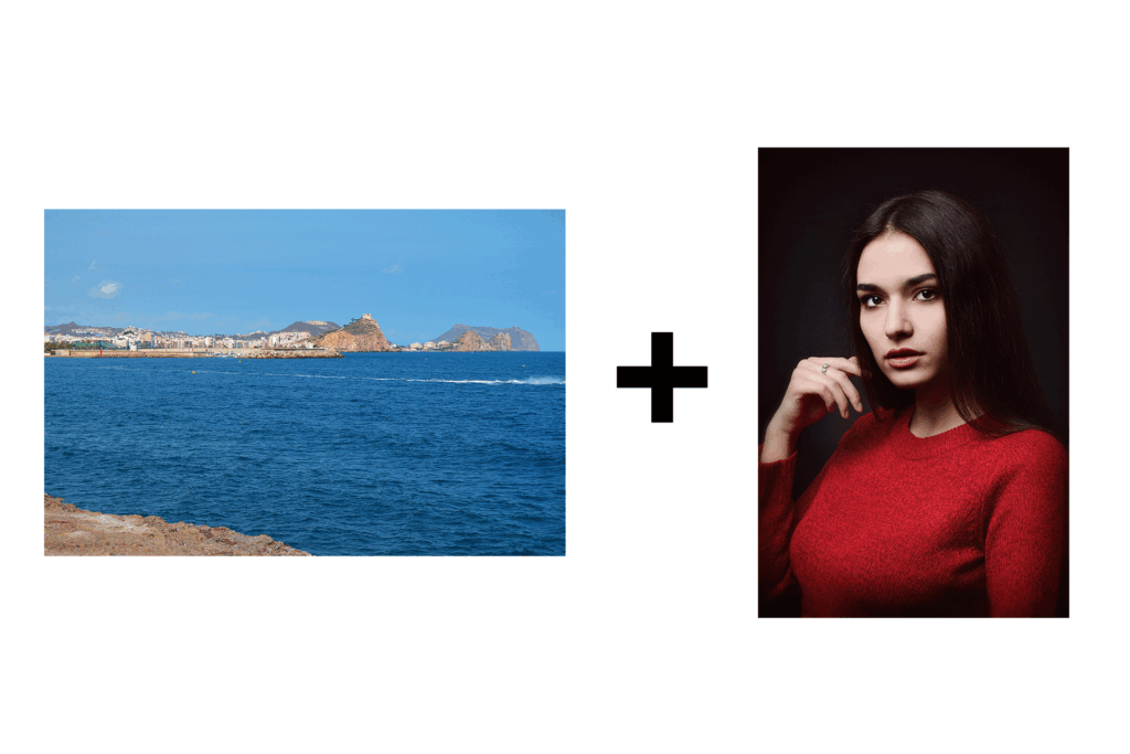「風景」と「人」といった2枚の異なる写真を重ね合わせていきます。