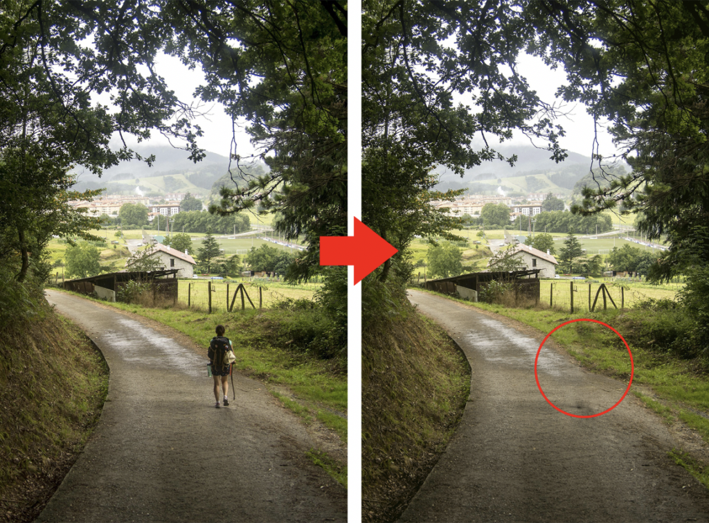 写真の中で不要となる物が写り込んでしまった場合も簡単に取り除けます。